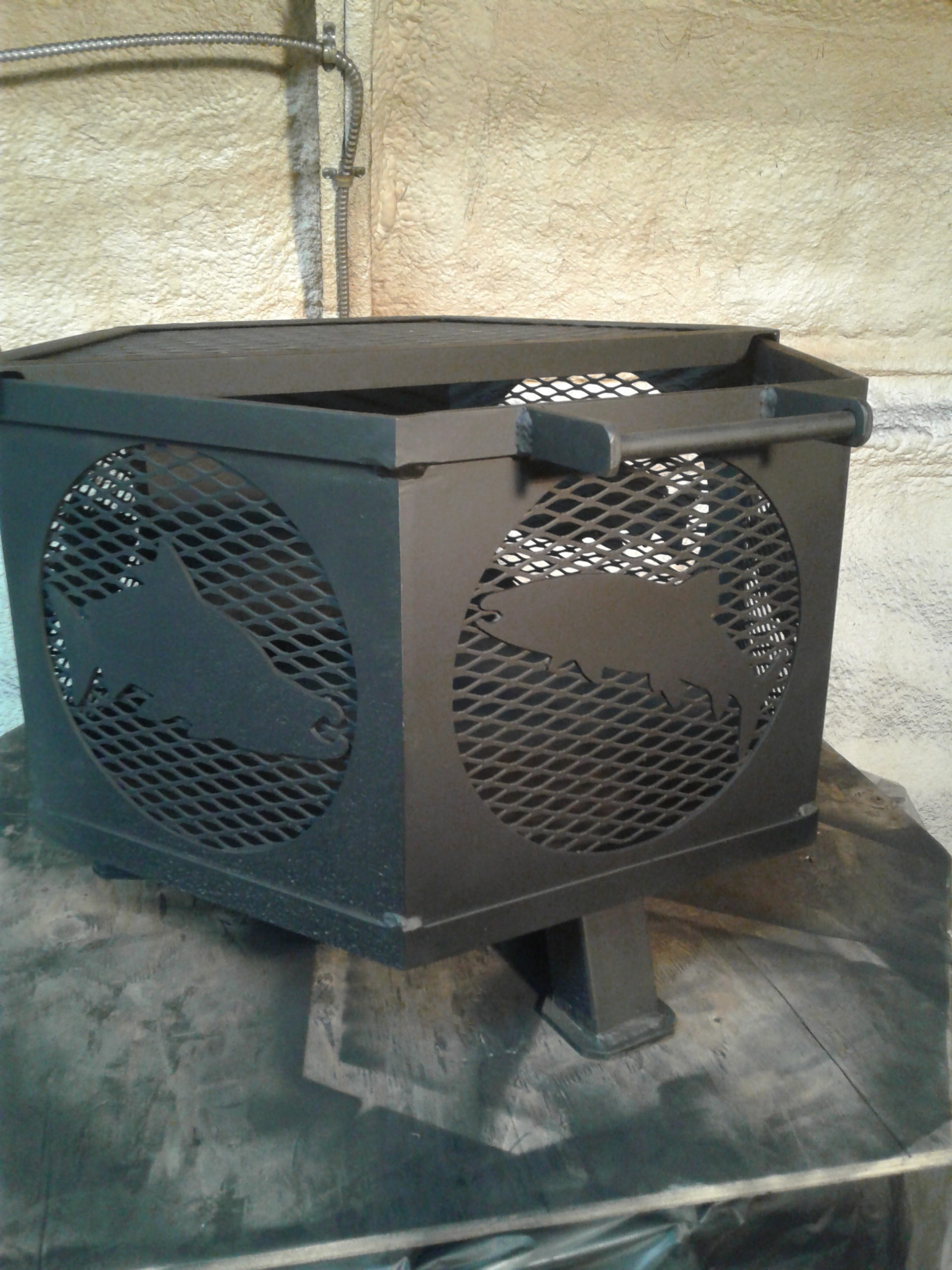 Robert has been in the welding fabrication business for 40 years and is a welding instructor at the state school. We have a welding shop of our own and customers would bring us firepits purchased from the big box building supply stores and want us try to repair and replace parts that failed because of how cheaply they were produced and they burned out within a season of use. I set out to produce a firepit that will last a lifetime. The hexagon shape is my own patented design, I make everything including the hinges because there’s nothing on the market as tough as what I make. They sit 4 inches off the ground so as not to kill your lawn or burn your deck. They all have a clean out door and will tip backwards for easy cleaning. At night the light from the fire will cast the shape of the cutout on the ground. All firepits panels are made from 12 gauge steel and everything else is made of 1/8 and ¼ inch steel. The 24 inch has 80 lbs of steel in it, the 36 inch has 120 lbs of steel, let’s see you wear that out. To survive in Alaska things have to be extremely tough. Firepits come with a lifetime guarantee if anything I build fails I will build you a new one free of charge shipping not included. As my dad taught me as a child “give the customer more than they expected” and “always stand behind your work”
